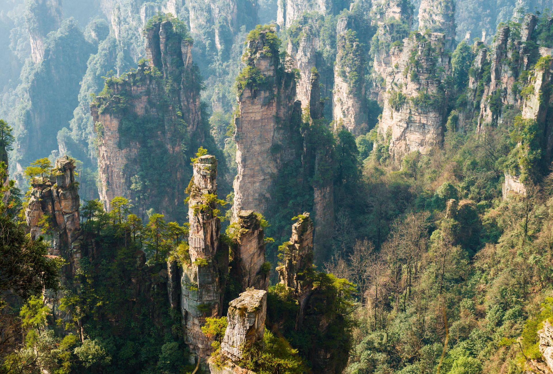Zhangjiajie National Forest Park v provinci Hunan je znan po svojih osupljivih peščenjakovih stebrih, ki so služili kot navdih za “lebdeče gore” v filmu Avatar. Park je bil ustanovljen leta 1982 kot prvi nacionalni gozdni park na Kitajskem in je del večjega območja Wulingyuan, ki je bilo leta 1992 uvrščeno na seznam svetovne dediščine UNESCO.